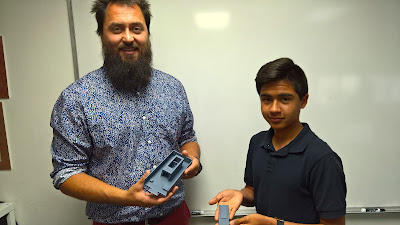 Isabelle in the 11th Grade has been working for a long time on a design for a pencil holder that clips to the edge of a table. Mrs. McLemore asked for an entire set for her class, and Isabelle quickly found that this design depended on making tiny adjustments, in the order of 0.1 mm (0.004 inches). She has submitted seven iterations so far, and we think we are ready for a mass production run! Mrs. McLemore is currently “road-testing” the prototype with her students.