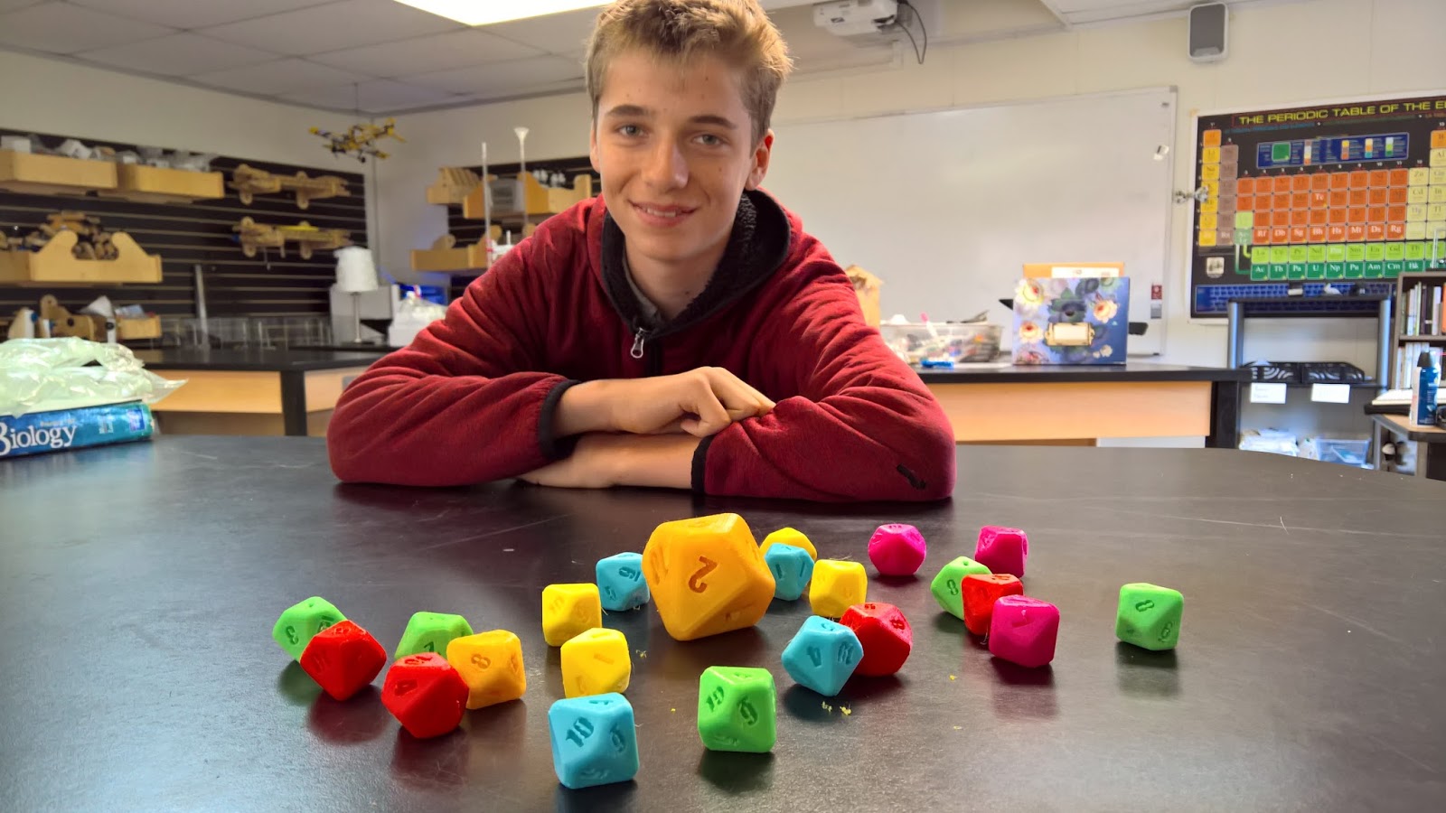 While we already featured Alec in the previous blog post for this project, Alec was actually given two smaller tasks. After designing and delivering the cone/cylinder and pyramid/box, he went on to create a ten-sided die for Mrs. Hammer’s third grade. Mrs. Hammer has received 22 of the dice (we also couldn’t resist printing one giant one!), and will be giving Alec feedback shortly.