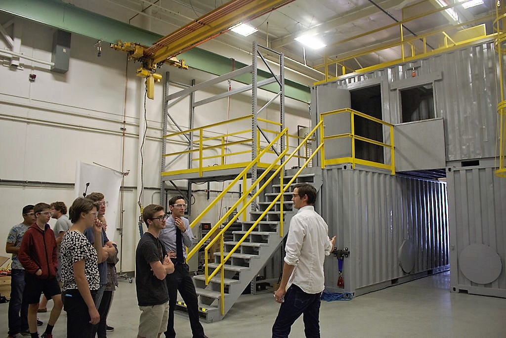Tyler shows the class the indoor equipment testing facility