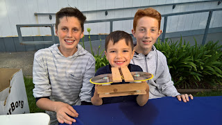 Sam and Tommy with their homemade motorized paper plane