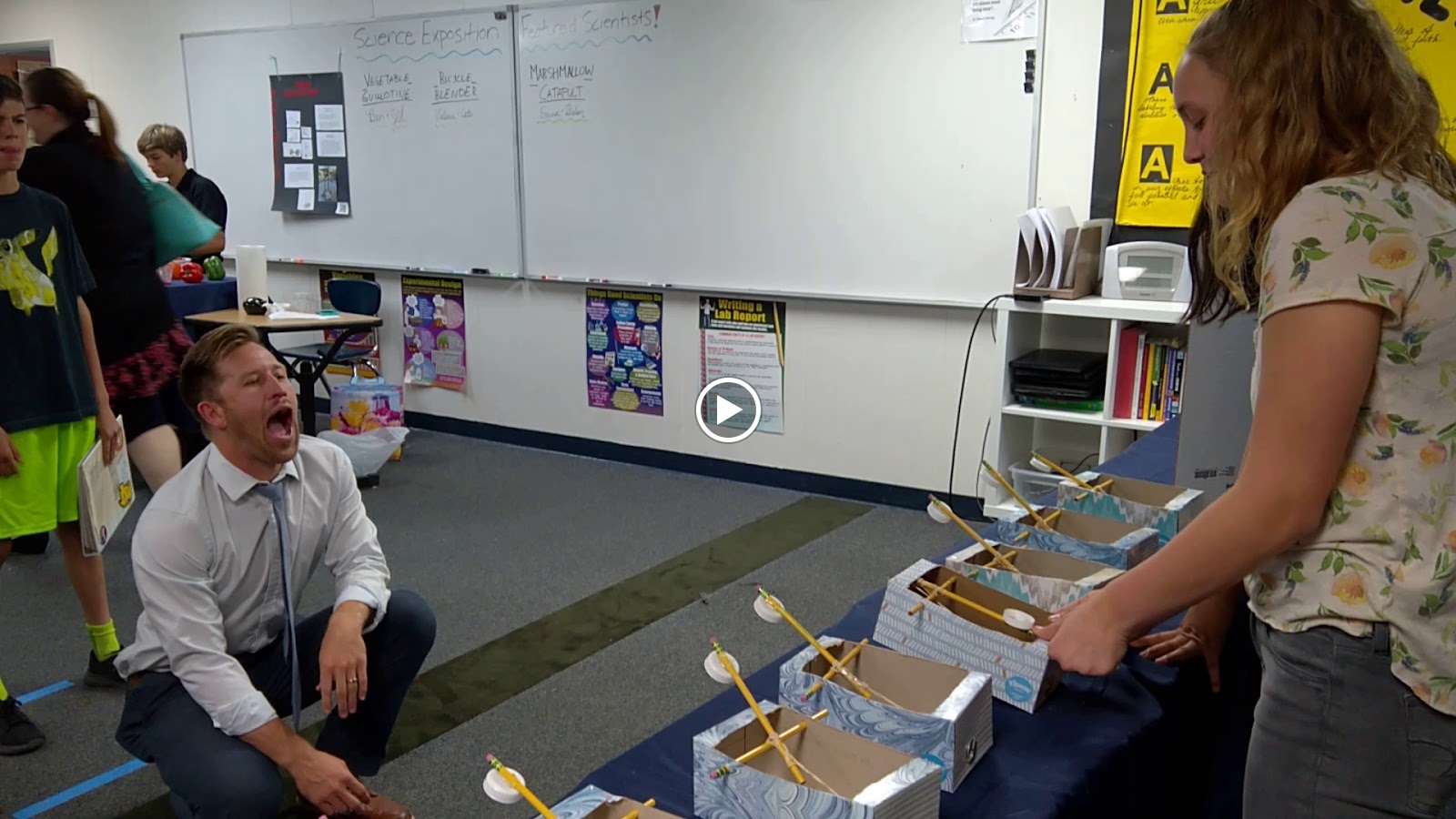Selene, Mr. Hougo, and Asher prepare a live demonstration of
