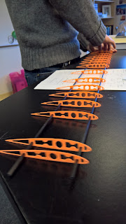 All teams have settled on a 3D-printed rib-and-spar design for the wings, although the exact rib profile varies in size and shape. All teams are using carbon fiber square tubes for the spars (the long beams that run through from wing tip to wing tip). Some teams are planning on skinning their wing with cellophane, and others are planning on tissue paper and dope (a kind of glue that tightens and hardens the paper).