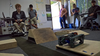 In the event of an emergency, robots may be called upon to enter into areas which have been devastated by natural disaster. The thirteen students from the Foundations of Engineering II class split up into four groups to build such robots, and testing came after eight weeks of work and dedication!