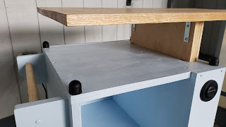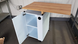 Mr. Meadth acted as fabricator for this project, with Zach in 11th grade contributing a beautiful hand-finished red oak table surface. Angel, while not an actual member of this project, worked after school to attach caster wheels and paint according to Mrs. Jones’ requested color scheme.
