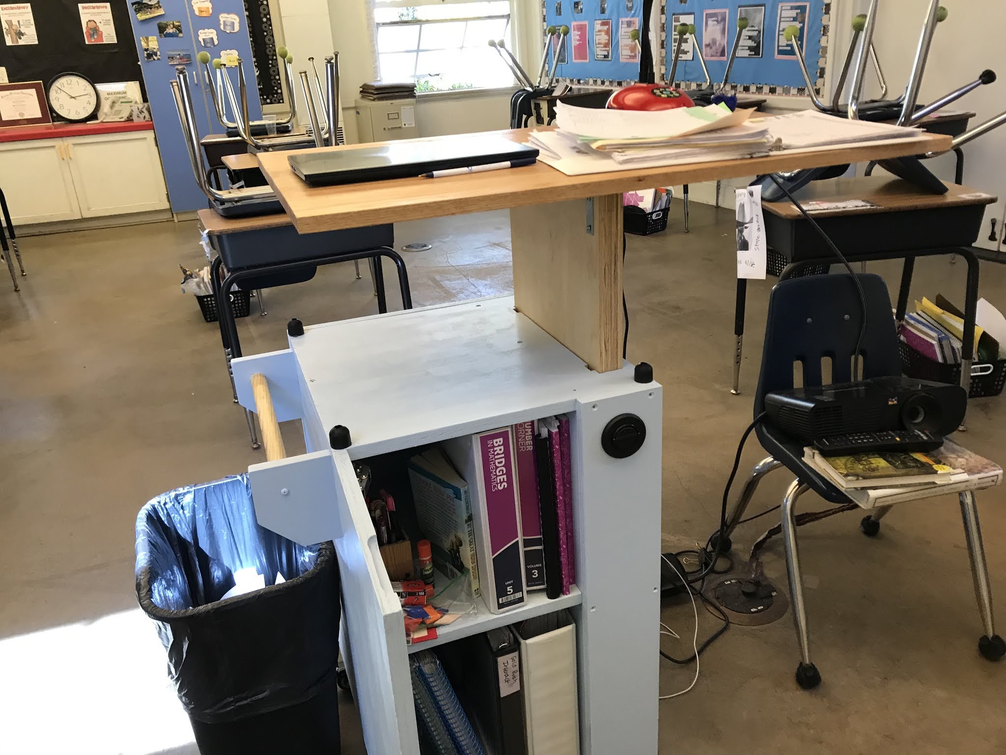 We’ve written on this blog about the completion, delivery, and feedback for PathPoint’s wheelchair computer desk, but what about the other project intended for Mrs. Jones? We’re glad to report that this project has now been constructed, assembled, and painted according to the student plans and delivered to a grateful 4th grade teacher!