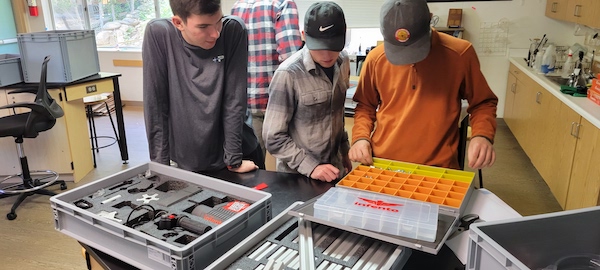 The first three days were spent jumping right on in. Without any delay, we eagerly tore open the shipments from Holland, and I was glad to hear the “oohs” and “aahs” around the room as the students lifted out the bright and shiny aluminium pieces. Each new box was full of bright red wheels, mysterious black connectors, and the team members naturally—like it was built into their engineering DNA—started sorting nuts and bolts into the containers. A place for everything and everything in its place!